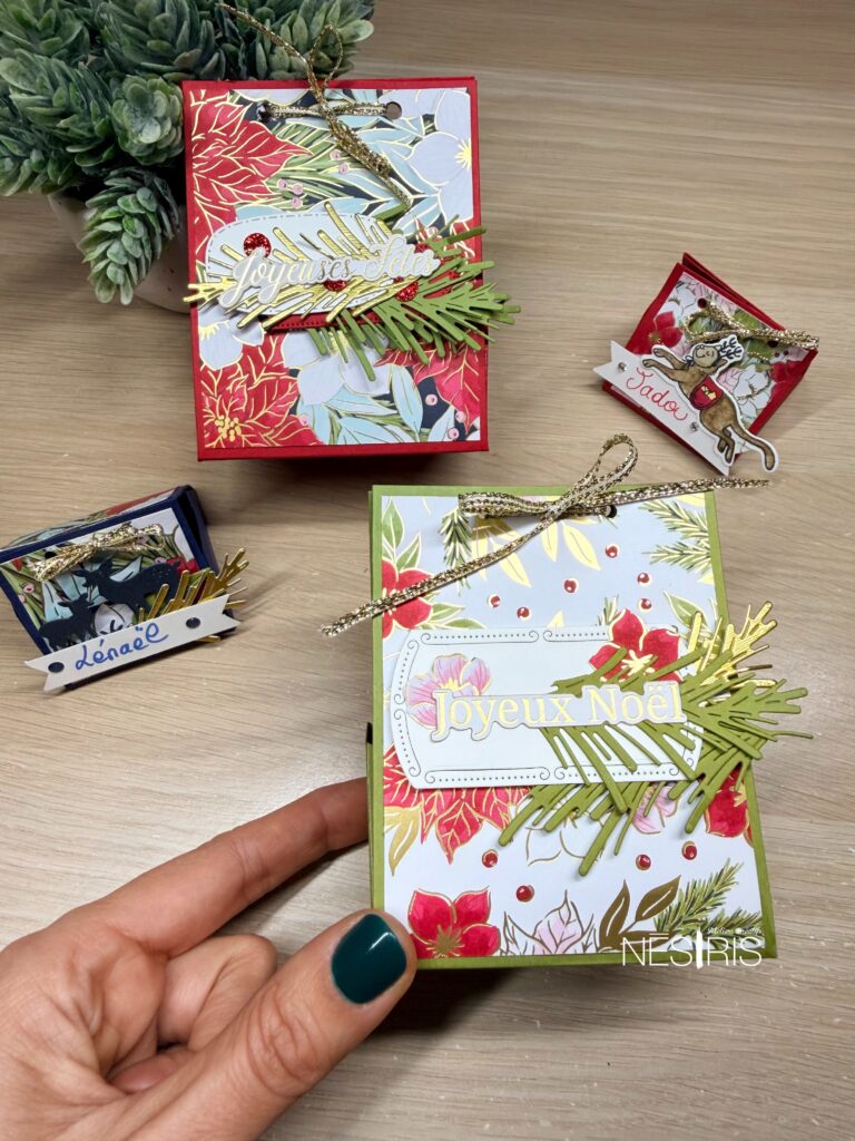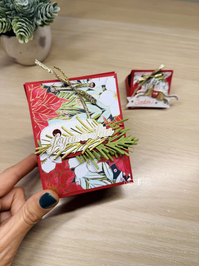 Ces deux projets utilisent le même pliage astucieux, rapide à réaliser et accessible même aux débutants, mais offrent deux formats et deux usages différents, pour un maximum d’effet sous le sapin !