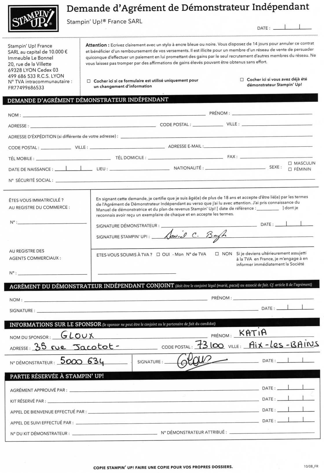 Stampin’Up! demande simplement de passer une commande par trimestre, là encore le montant n’est pas définit.
