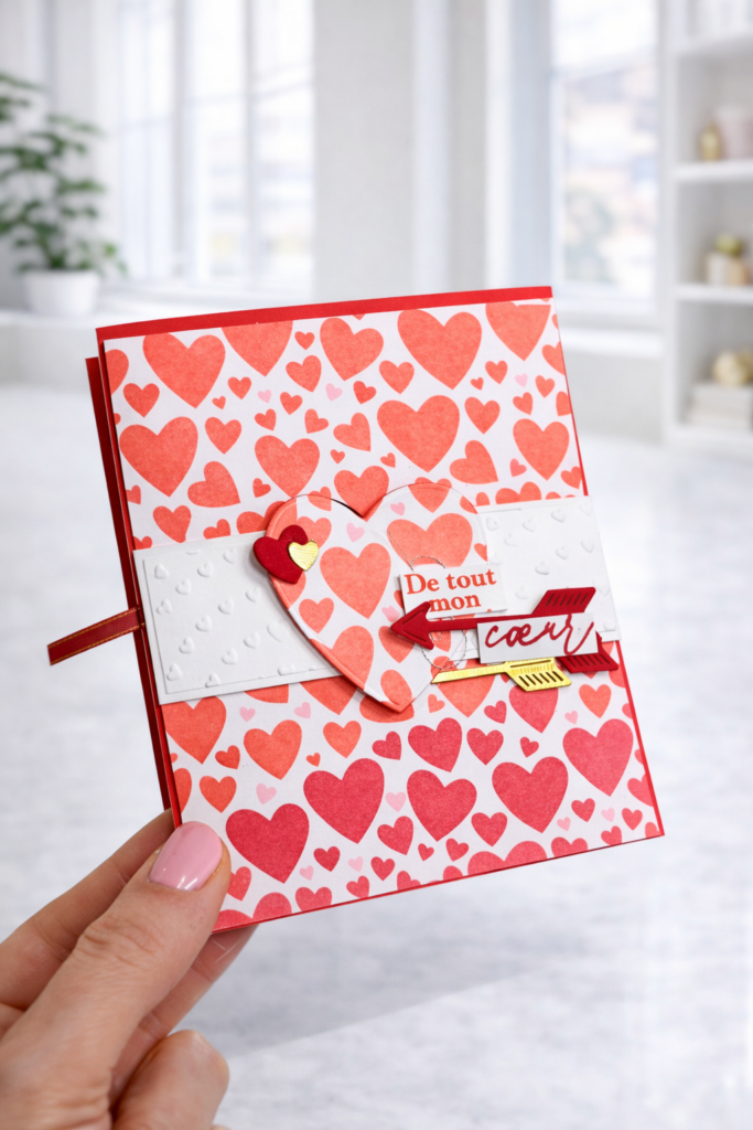 Lors de mon dernier live créatif, j’ai proposé une carte effet surprise avec ouverture cœur, un projet à la fois accessible, rapide et ultra bluffant, parfait pour offrir à une personne que l’on aime.