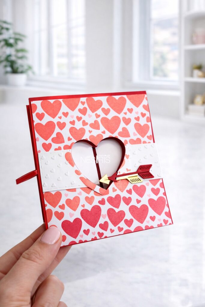 Cette carte scrapbooking en forme de cœur fonctionne aussi bien pour :